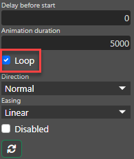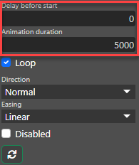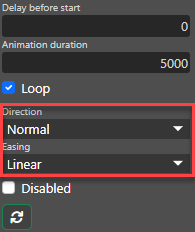 - specify the movement once selected (the values will default to the position of the object in the designer),