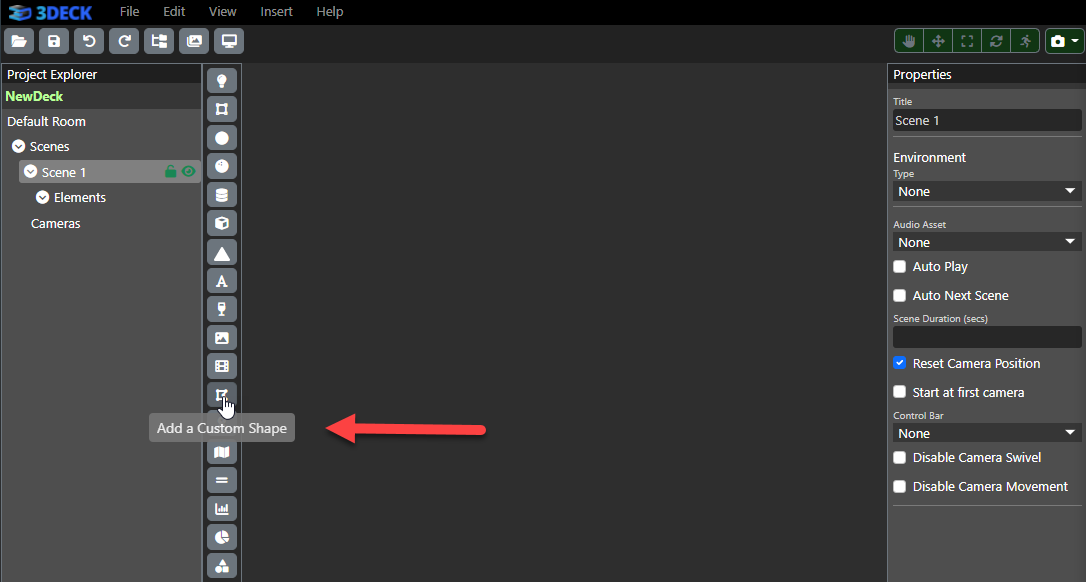 Lastly, if you'd like to make an object bulky, make sure you select your shape on Project Explorer and see the checkbox "Beveled" on the Properties (right navigation) bar below Dimensions. All other entries, such as position, scale and rotation, and color remain the same as in other elements.
