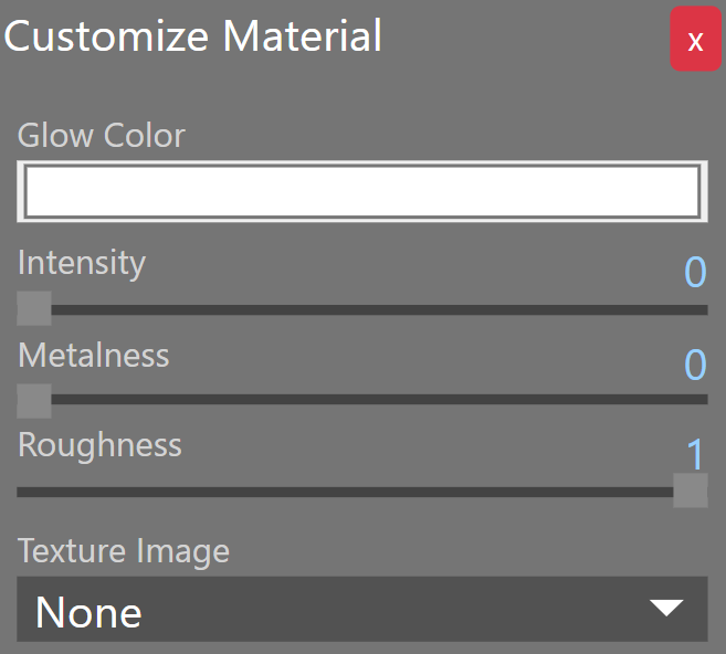 The glow color will allow you determine what color shines off the material with an intensity slider right below it. Meanwhile, metalness will allow you to set visual qualities associated with luster and shine. Roughness will help to create a smooth or rugged texture. Meanwhile, actual textures can be set as skins using Texture Images.